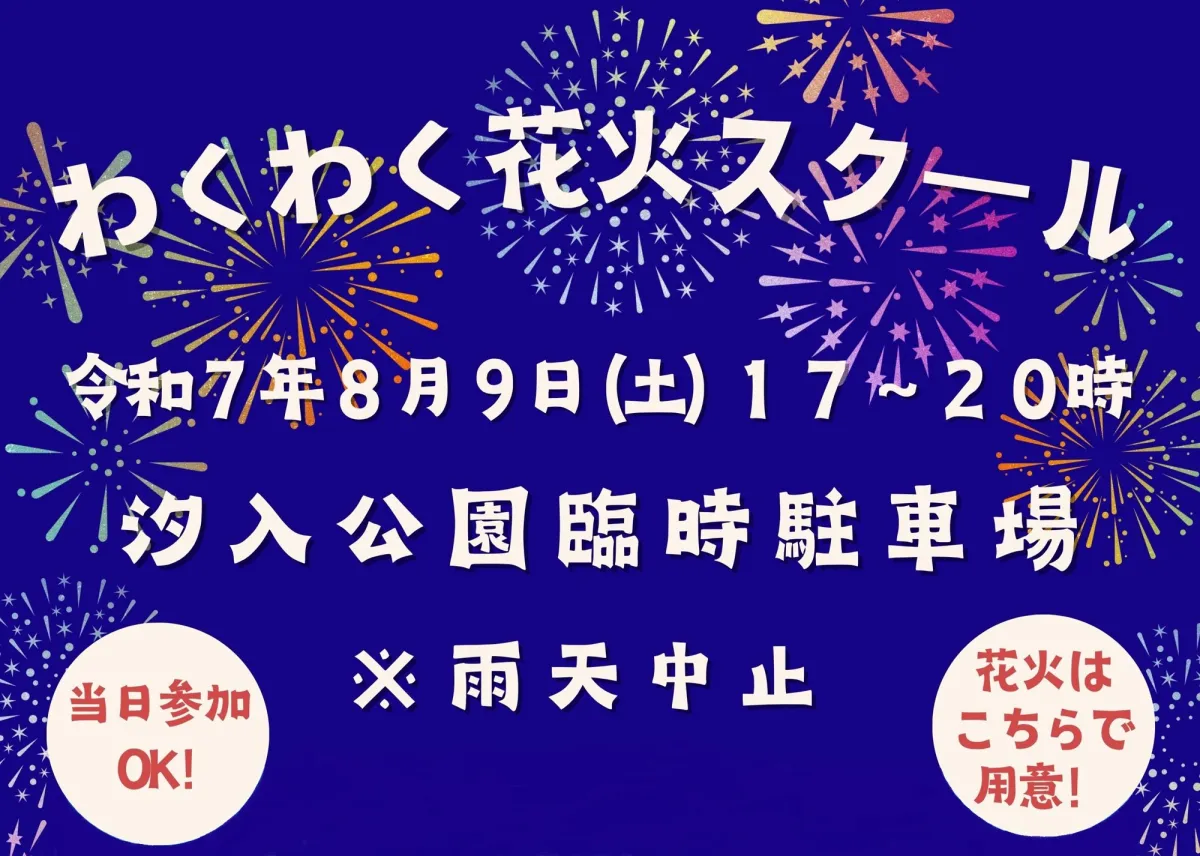 2025年8月9日(土)、汐入公園にて「わくわく花火スクール」が開催されます。このイベントでは、親子で花火を楽しむだけでなく、正しいマナーや安全な扱い方を、実際の花火師から学ぶことができます。