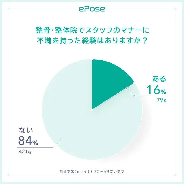 整骨院や整体院を利用する上で、施術自体はもちろん大事ですが、接客マナーや言葉遣いも非常に重要です。この度、株式会社ORGOが実施した「整骨院・整体院の利用満足度調査」にて、約16%の人々が接客に不満を抱いたことがあると報告されています。具体的な不満内容は一体どのようなものでしょうか?