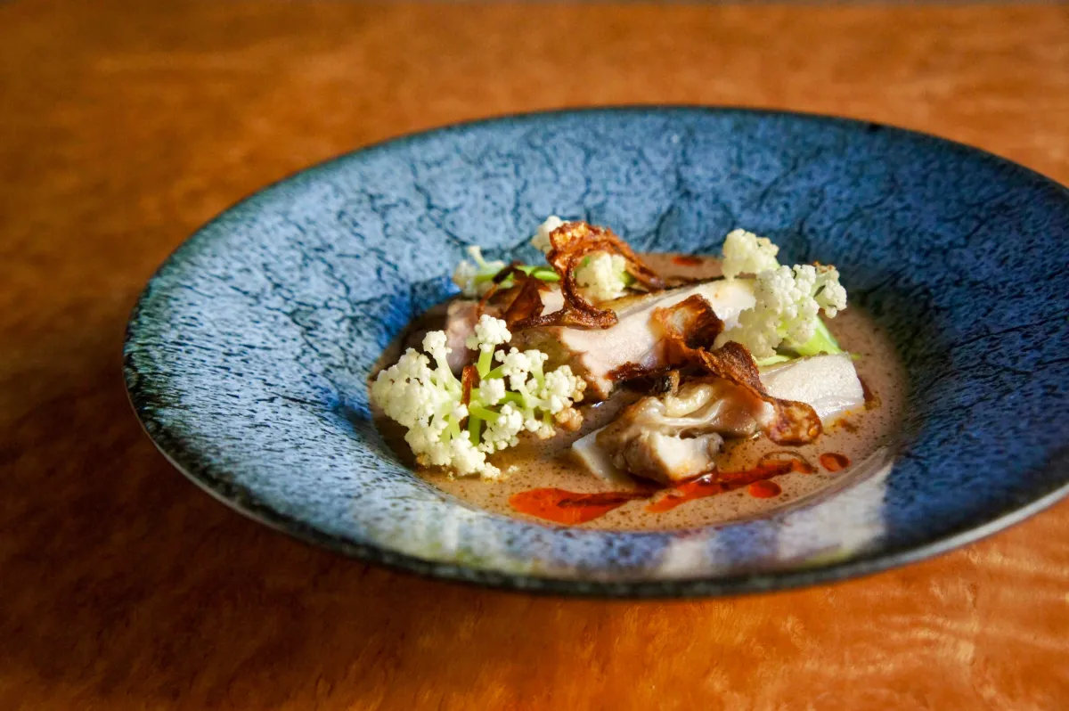 - - トムカータレー: ブリヒラとポロ葱の一品。