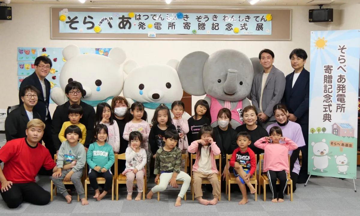 寄贈式当日には、園児たちを対象とした「そらべあワークショップ」が行われ、北極の環境問題について学ぶ紙芝居や、手回し発電機を用いた実践的な発電体験が行われました。子どもたちは、電気を生み出す体験に興奮しながら参加し、楽しみながら持続可能性について理解を深めました。参加した園児たちはその楽しさを口々に語り、活動は和やかな雰囲気に包まれました。