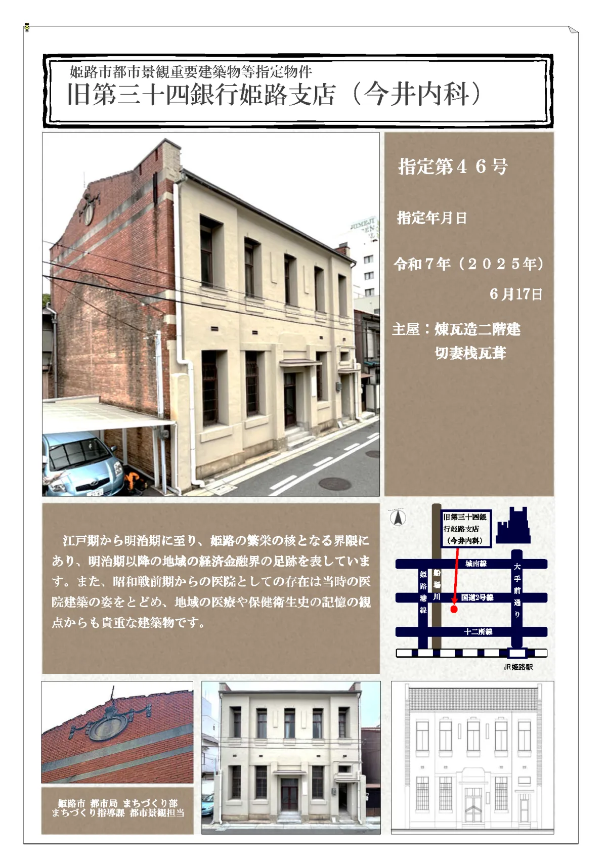 姫路市では、旧第三十四銀行姫路支店(今井内科)と土井家住宅の二つの建物が、都市景観条例に基づいて重要建築物に指定されました。これにより、地域の歴史的価値と景観が評価されることになりました。