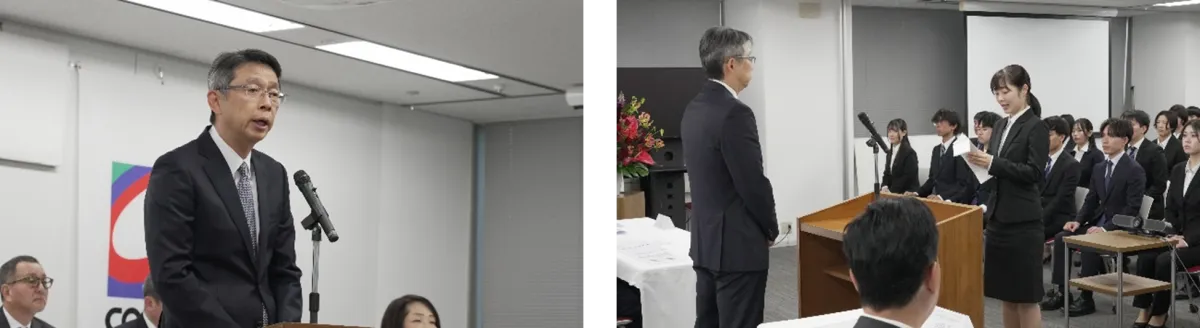 2025年度入社式が4月1日、コスモエネルギーホールディングスにて行われました。新入社員199名が集まり、特別な一日を迎えました。入社式は本社の会議室で開催され、グループ会社の社員はオンラインで参加しました。入社式のテーマは「コスモエネルギーグループの一体感の醸成 ~Starts from here~」であり、新たな仲間を迎えるこの瞬間が強い絆で結ばれることを目指しています。