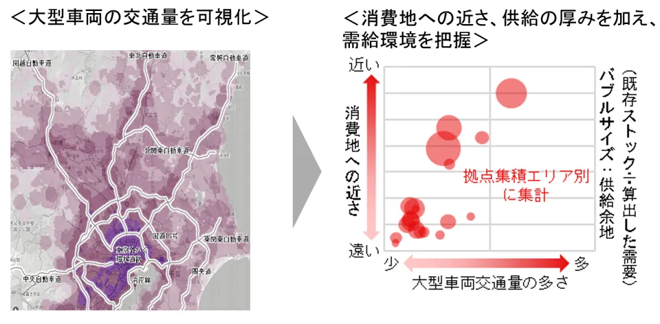 物流拠点の需要分析において、周辺の交通量は重要な要素ですが、賃料水準や供給の差異を説明するには不十分です。このレポートでは、交通量だけでなく、消費地への近接を含む指標を用いることによって、より立体的な需給環境の理解を目指しています。