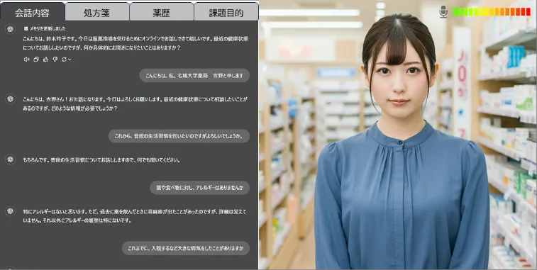 薬剤師として求められるスキルは、薬の知識だけではなく対人業務に関するコミュニケーション能力も含まれます。患者から必要な情報を引き出し、薬物療法を提案するためには、優れた情報収集能力が欠かせませんが、大学内での実操演習には限界があります。そこで、生成AIの対話技術を利用した学習システムが必要とされていました。このシステムは、4年生向けの「薬物治療マネジメント」科目で活用され、その効果を測定することを目的としています。