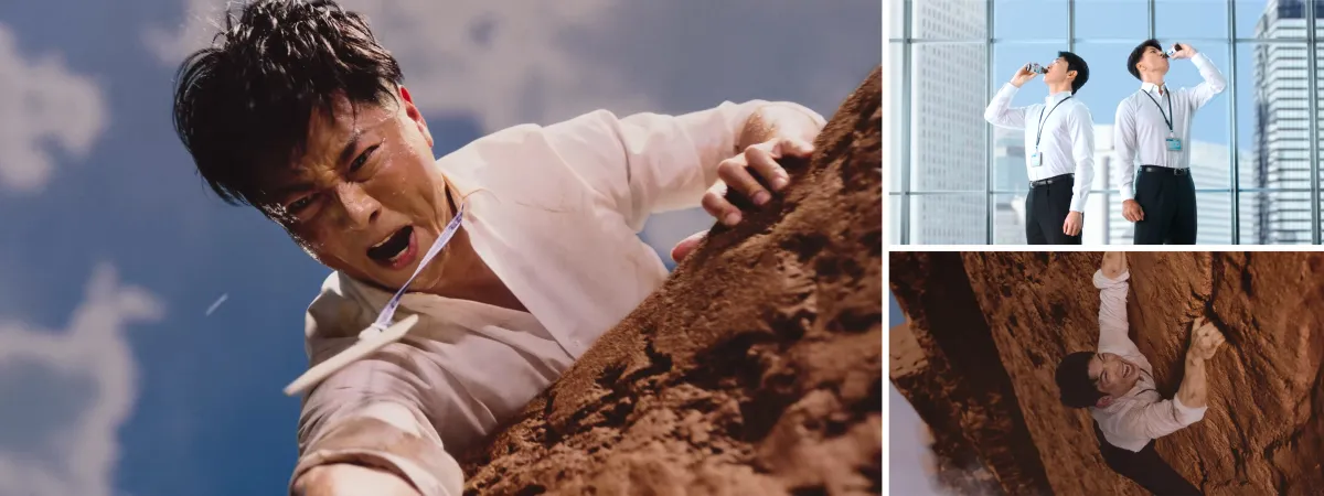この企画には、自然の崖ではなく、ビジネスという新たなフィールドでの戦いがテーマに含まれているのです。 「クライシス」篇では、会社員として危機的状況に立ち向かう姿が映し出され、視聴者に共感を呼び起こす内容となっています。