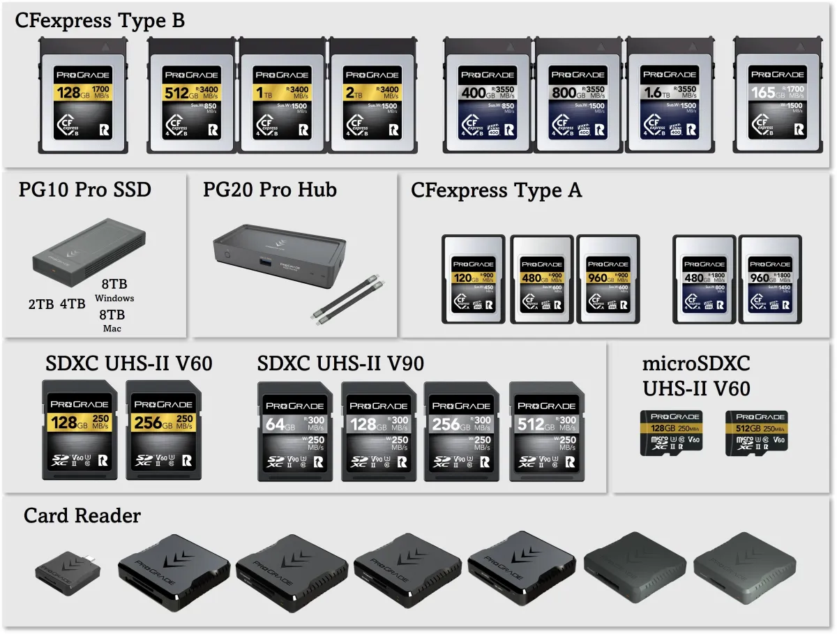ProGrade Digitalの製品は、高い耐久性と安定性が求められる撮影シーンでも信頼されています。特にCFexpressカードは、データ転送速度が非常に速いため、4Kや8Kの映像を扱うプロのカメラマンにも最適です。加えて、SDXC UHS-II V90カードも、ビデオやハイレゾ音源を扱うユーザーにとってはマストアイテムです。