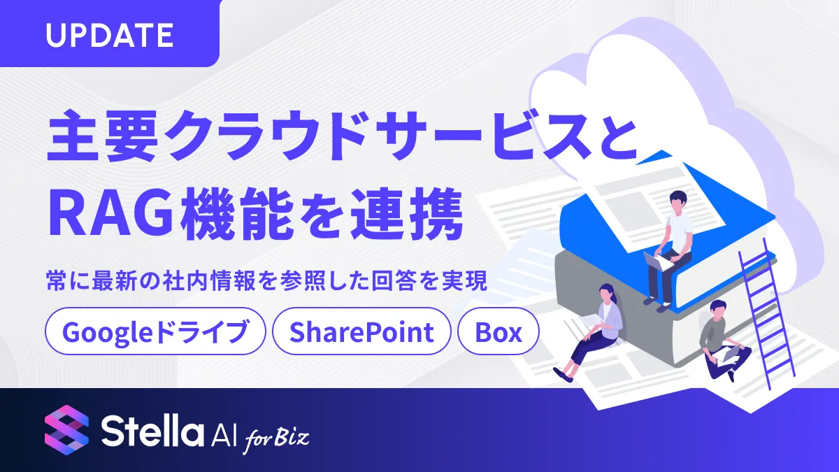 株式会社SUPERNOVAは、2026年1月19日より自社の生成AIサービス「Stella AI for Biz」に新機能を追加します。この新機能は、RAG(Retrieval-Augmented Generation)を活用し、主なクラウドサービスとシームレスに連携できる点が特徴です。## 背景と課題 近年、生成AIのビジネス利用は急速に広がっていますが、企業が抱える課題も浮き彫りになっています。特に営業資料やマニュアル、契約書など、社内文書をAIが参照する際の運用負荷が高まっています。更新が頻繁なこれらの資料は、RAGデータベースへの手動アップロードが必要で、多くの社員にとっては煩雑な作業に感じられます。また、総務省の「令和7年通信利用動向調査」によると、企業のクラウドストレージ利用率は80%を超え、GoogleドライブやSharePoint、Boxなどのサービスが多くの企業のインフラとして定着しています。このような状況下で、