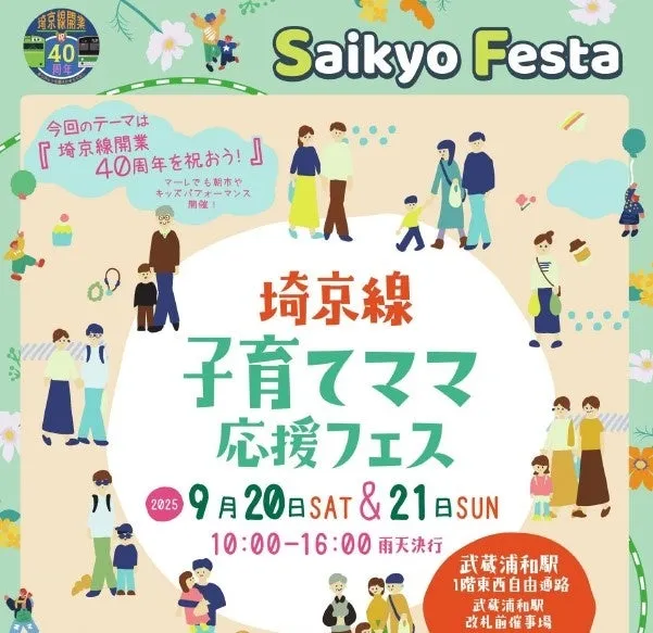今年は埼京線の開業から40周年。この特別な年を記念し、武蔵浦和駅前にて「子育てママ応援フェス」が開催されます。このイベントは地域の皆さまへの感謝の気持ちを込めて企画されており、子育て世代を中心に、家族全員が楽しめる多彩なアクティビティが用意されています。