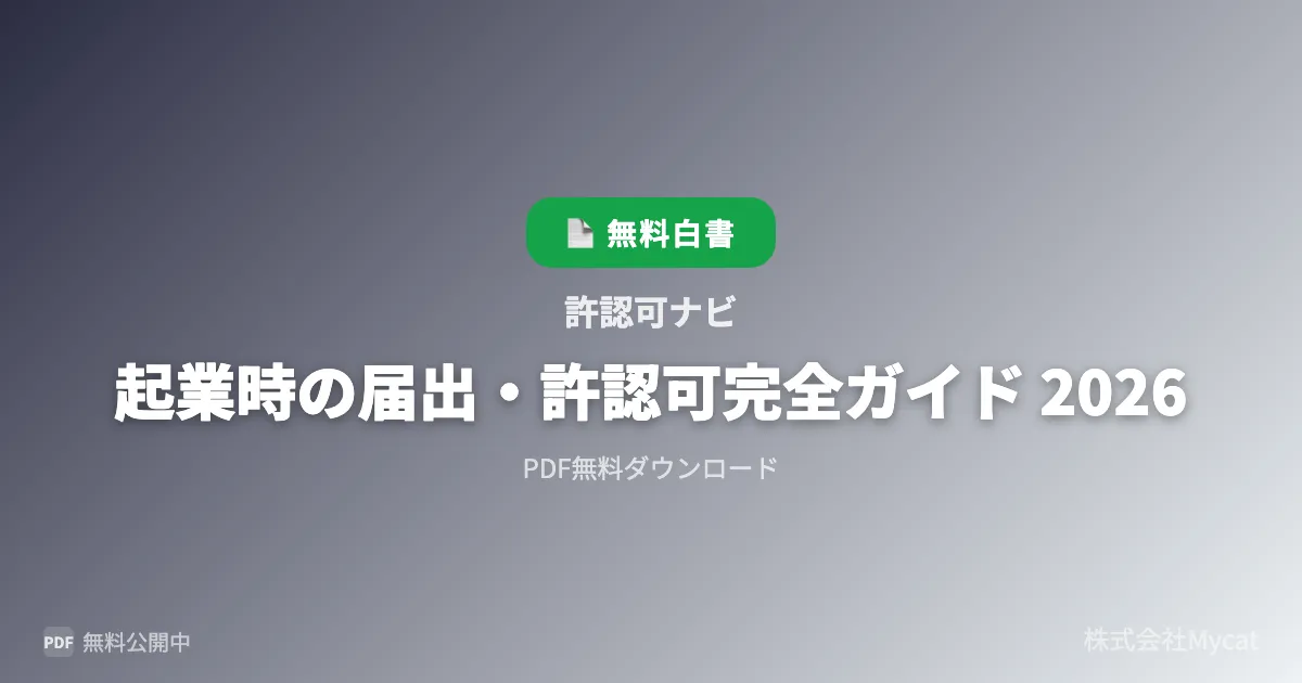 起業を目指す人々にとって、必要な許認可や届出に関する情報は欠かせません。株式会社Mycatが無料で提供する『起業時の届出・許認可完全ガイド 2026』は、各種業種に応じた必要な手続きが詳細にまとめられており、起業の成功をサポートします。
