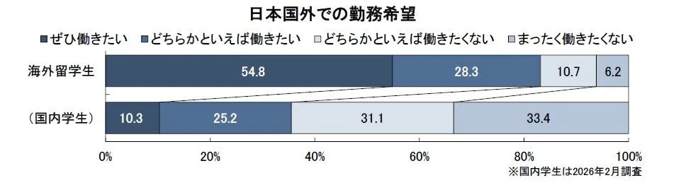 調査は2026年2月25日から3月14日にかけて、インターネットを通じて実施されました。調査対象者は、卒業が2025年5月以降の11,372名の留学生の中から選定されました。結果的に、629名の有効回答が集まり、海外での勤務希望や志望業界などに関する貴重なデータが得られました。