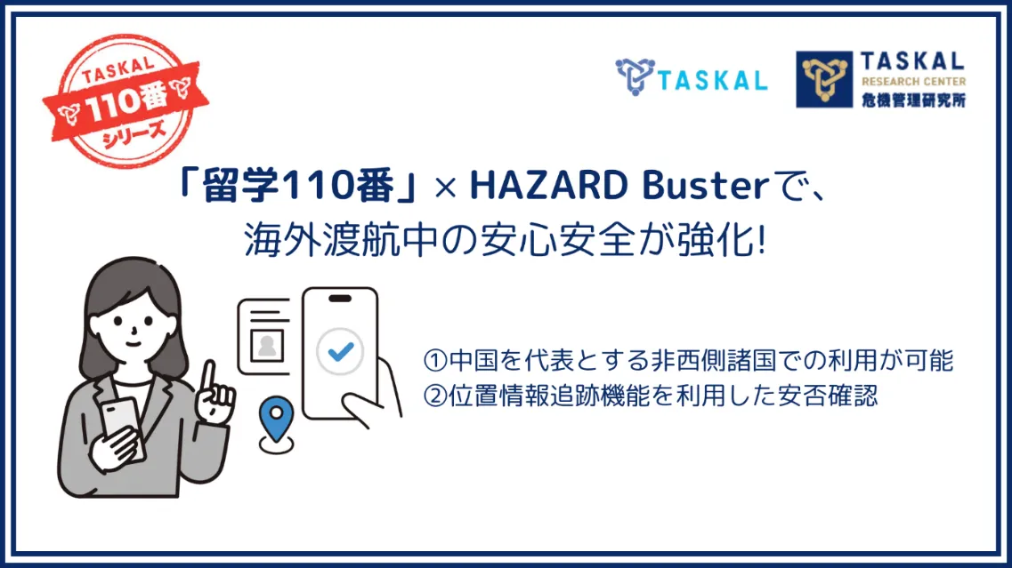 留学生向け危機管理サービス「留学110番」が、ジョルダン株式会社が開発した危機管理・安否確認アプリ「HAZARD Buster」との連携を開始しました。これにより、留学生やその家族が抱える不安を解消し、安全な留学生活をサポートします。