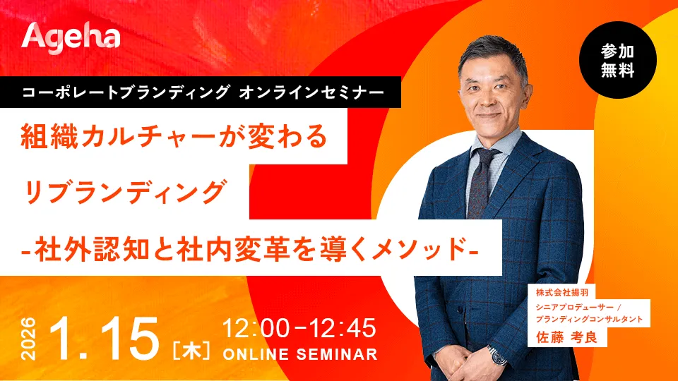企業が持つイメージや認知は、時に実態とズレを生じることがあります。特にDX(デジタルトランスフォーメーション)や事業変革が進む中、改めて見直されるべきなのがコーポレートブランディングです。株式会社揚羽は、その変化を乗り越えるためのリブランディング手法について、2026年1月にオンラインセミナーを開催します。