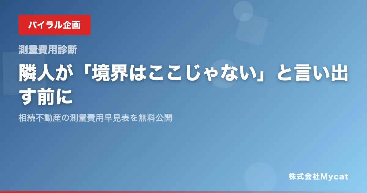 不動産の相続において、境界を巡るトラブルは多くの人にとって深刻な問題です。しかし、Mycatの新サービス「測量費用AI早見表」を活用することで、その負担を軽減することが可能になります。特に、不動産の売却を考えている方には、事前に測量費用を確認し、計画的に進めることが重要です。これにより、安心して相続した不動産の処分を行うことができるでしょう。