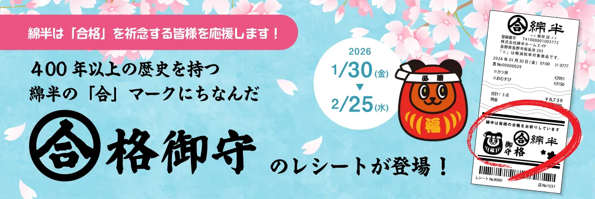合格を願い、ぜひこの機会に綿半の特別なレシートを手に入れてみてはいかがでしょうか。