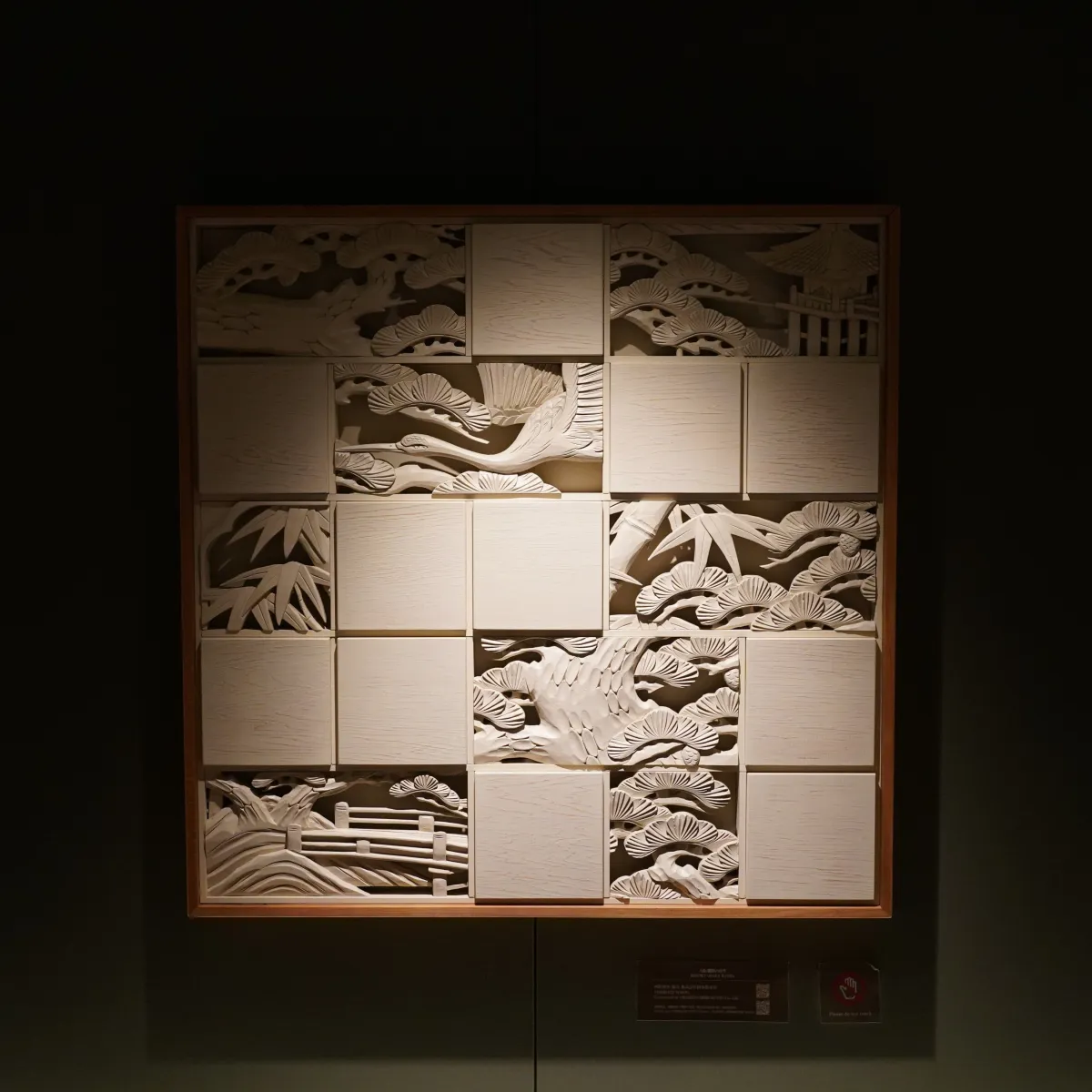 「大阪欄間の再生」プロジェクトでは、郭元木氏が岡本銘木店の欄間を用いて空間に調和しつつも存在感のあるアート作品を制作しました。ラウンジ自体は高級感あふれるモダンなデザインで、そこに展示される大阪欄間は、伝統と現代の見事な融合を実現しています。来訪者は、静寂の中で響く木のノミの音に耳を傾けることで、伝統を深く感じることができるでしょう。