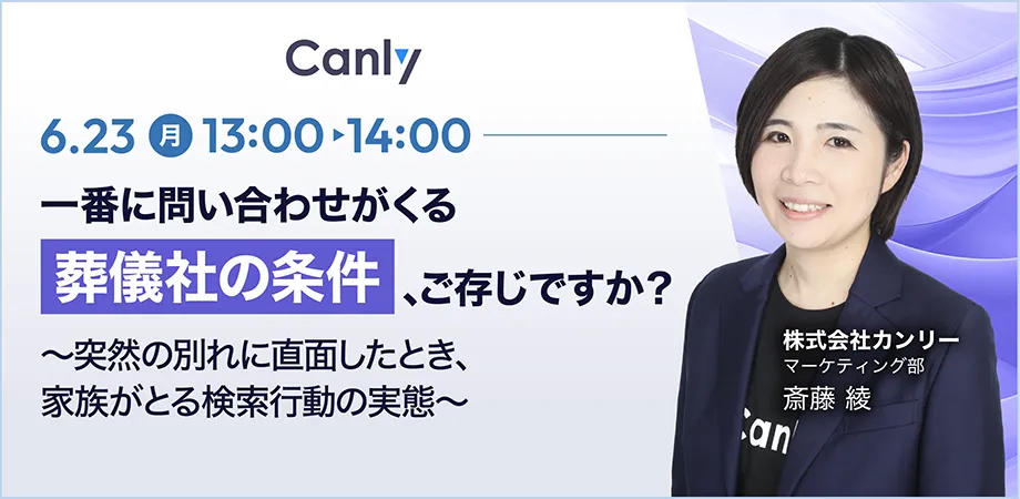 2025年6月23日(月)午後1時から、株式会社カンリー主催の無料オンラインセミナーが開催されます。このセミナーでは、突然の別れに直面したご遺族がどのように葬儀社を選ぶのか、その背後にある行動や検索動機について深く掘り下げます。