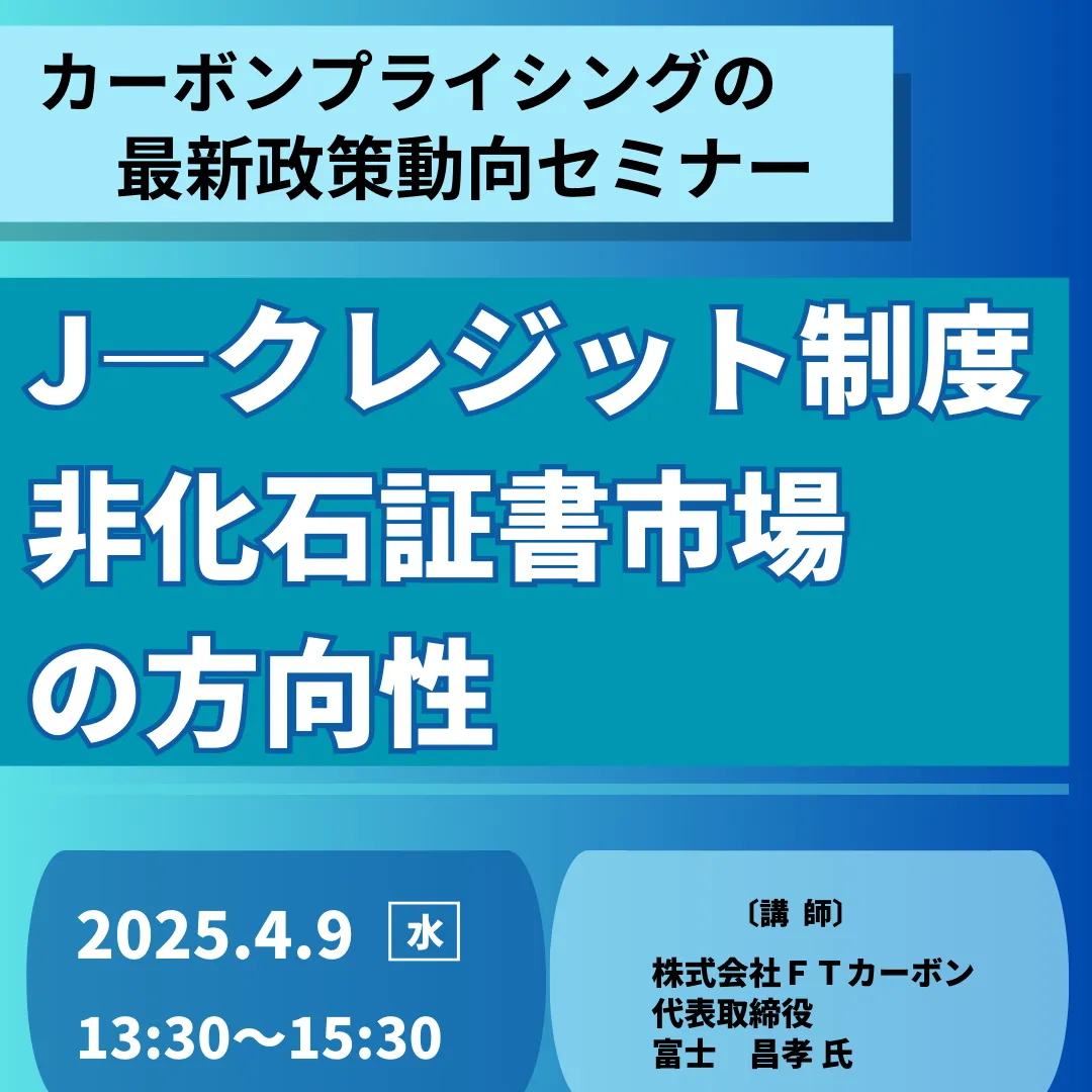 今回の講師は、株式会社FTカーボンの代表取締役、富士昌孝氏です。氏はカーボンプライシング政策や、J―クレジット制度、非化石証書の市場動向について具体的に解説します。特に、J―クレジットが企業の環境対策にどのように寄与するのか、その制度概要、最新の市場動向、さらには政府による売払いについても触れます。また、J―クレジットと競合商品の非化石証書の市場動向の比較も行い、これらの施策が向かう方向性を分析します。