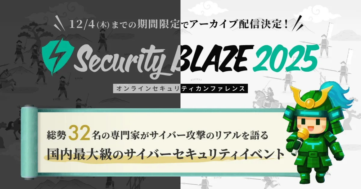 「Security BLAZE 2025」は、2025年11月19日と20日の二日間にわたって開催されました。大きなテーマには「天下分け目のセキュリティ戦線に備えよ!」が掲げられ、参加者は未来のサイバー攻撃に備えるための知識を深めることができました。
