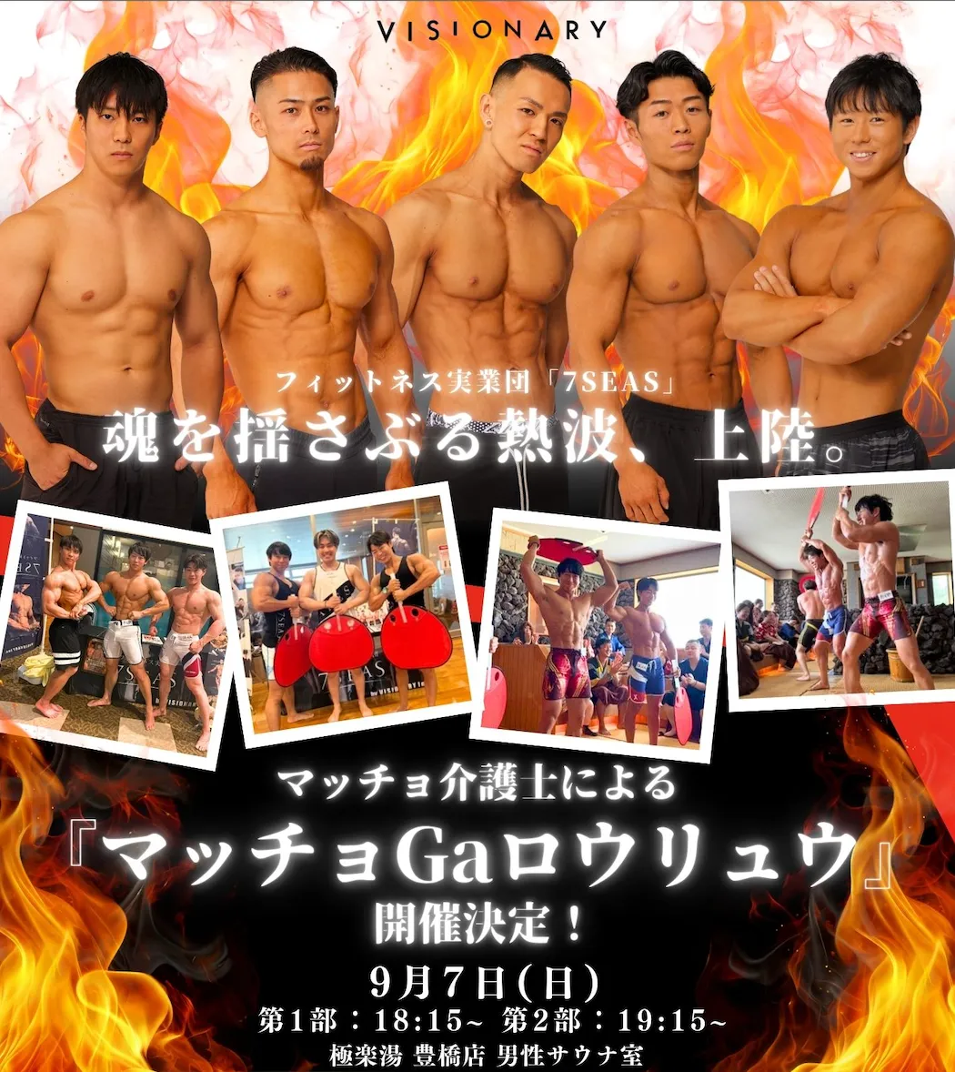 グループホームの運営や福祉サービスに力を入れている株式会社ビジョナリーは、地域の特性を考慮した支援活動も行っており、このイベントもその一環なんです。マッチョ介護士たちが送る熱波パフォーマンスは、サウナでの安らぎと共に、訪れる人々に新たな体験を提供することでしょう。