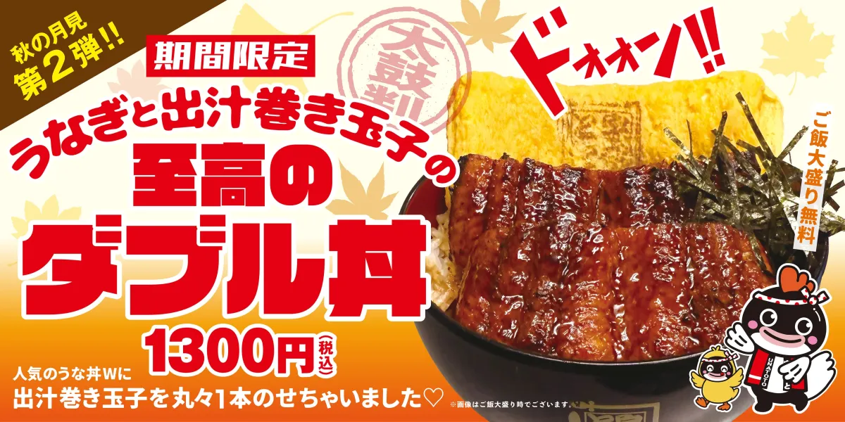 「うなぎと出汁巻き玉子の至高のダブル丼」が、2025年10月3日から11月16日までの期間限定で登場します。特別なコラボレーションと、秋の美味しさを詰め込んだこの丼は、見逃せない一杯です。
