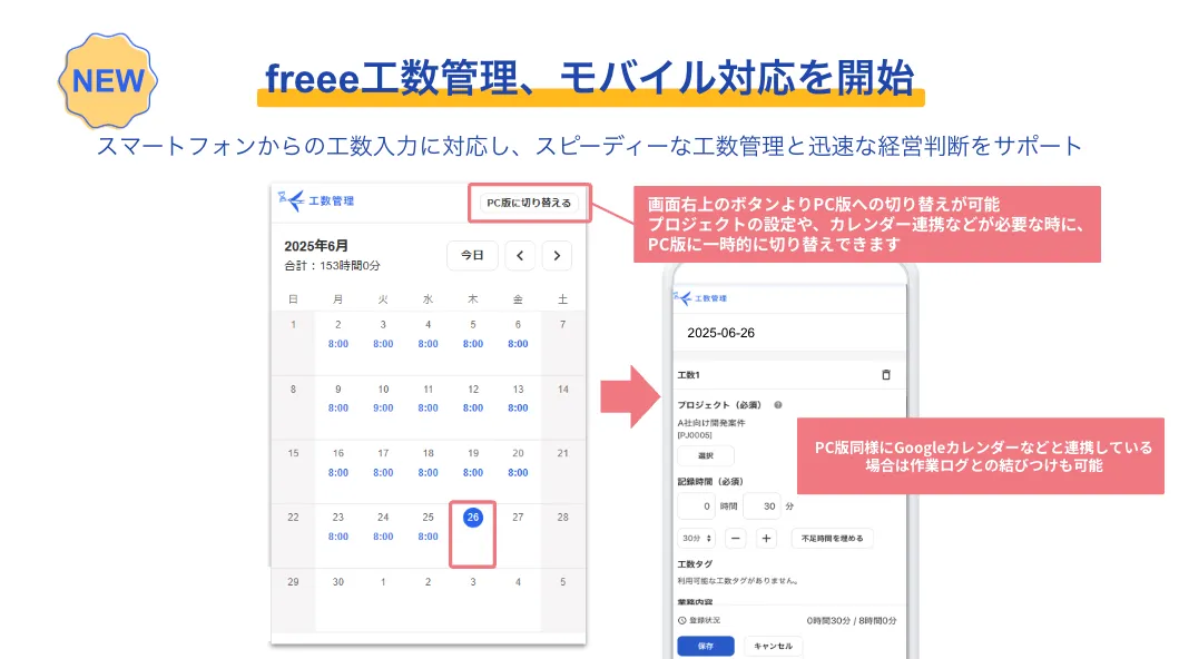 フリー株式会社が提供する「freee工数管理」が、待望のスマホ対応を始めました。この新機能によって、従業員はPCを持っていなくても、外出先や移動中にスマートフォンからスムーズに工数を入力できるようになります。これにより、業務の記録がスピーディーに行えるようになり、より効率的な経営判断が可能となります。