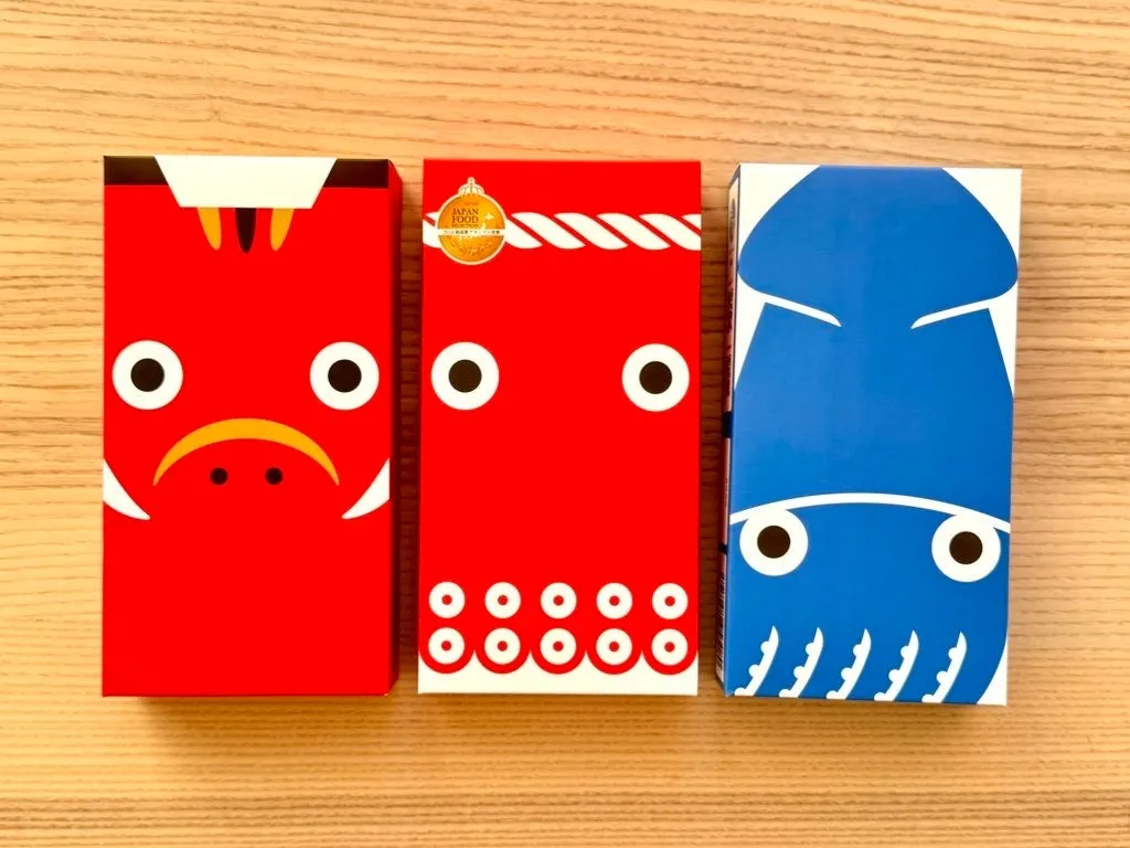 新しい商品展開の一環として、福島の象徴「赤べこ」をテーマにした“しあわせ”パッケージも用意。これは、視覚的に福島の幸運を願うというメッセージを込めたものです。福島の海の豊かさと、赤べこの無病息災を掛け合わせたことにより、観光土産や贈り物としても贈りやすいデザインに仕上がっています。