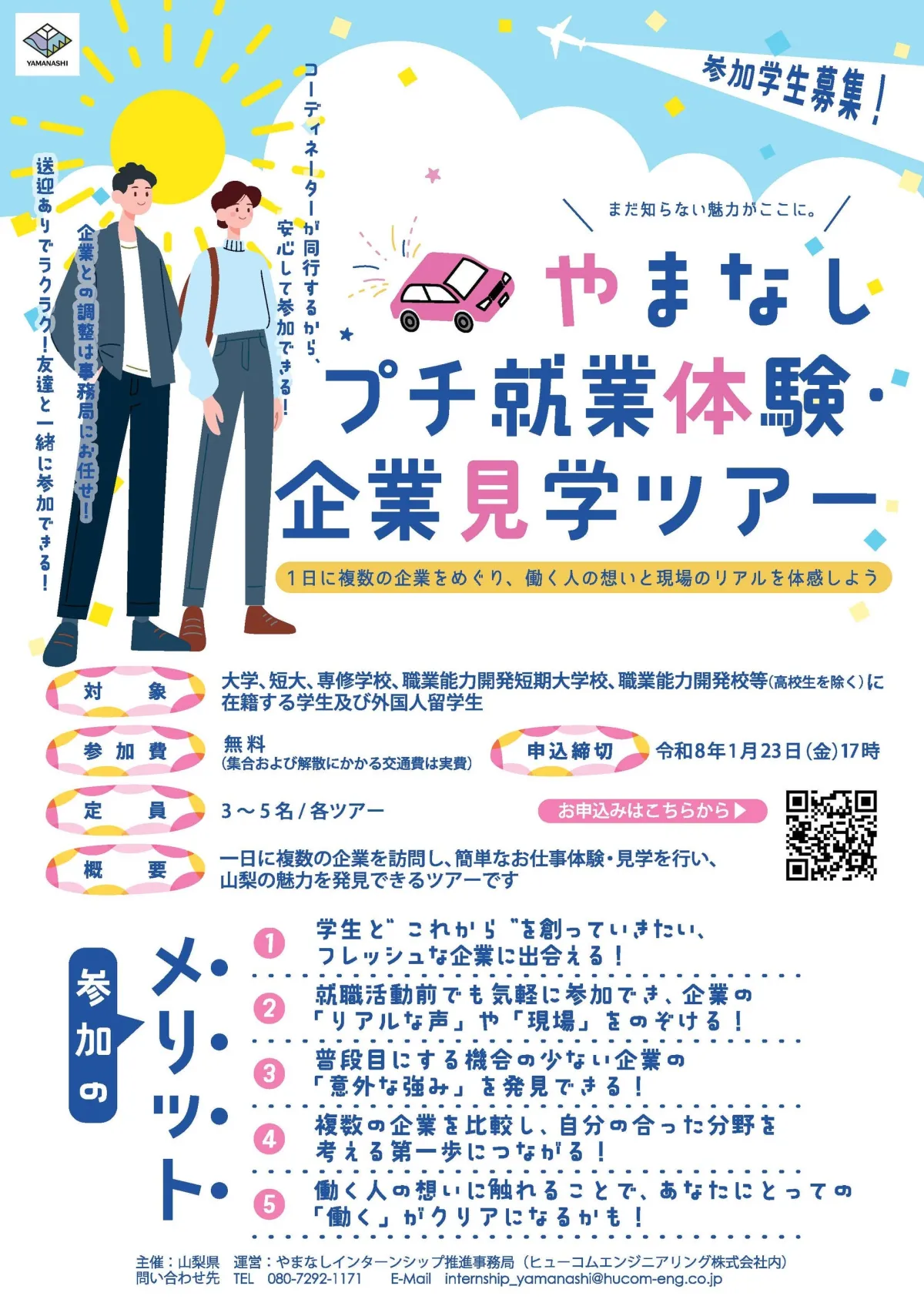 山梨県が開催する「やまなしプチ就業体験・企業見学ツアー」