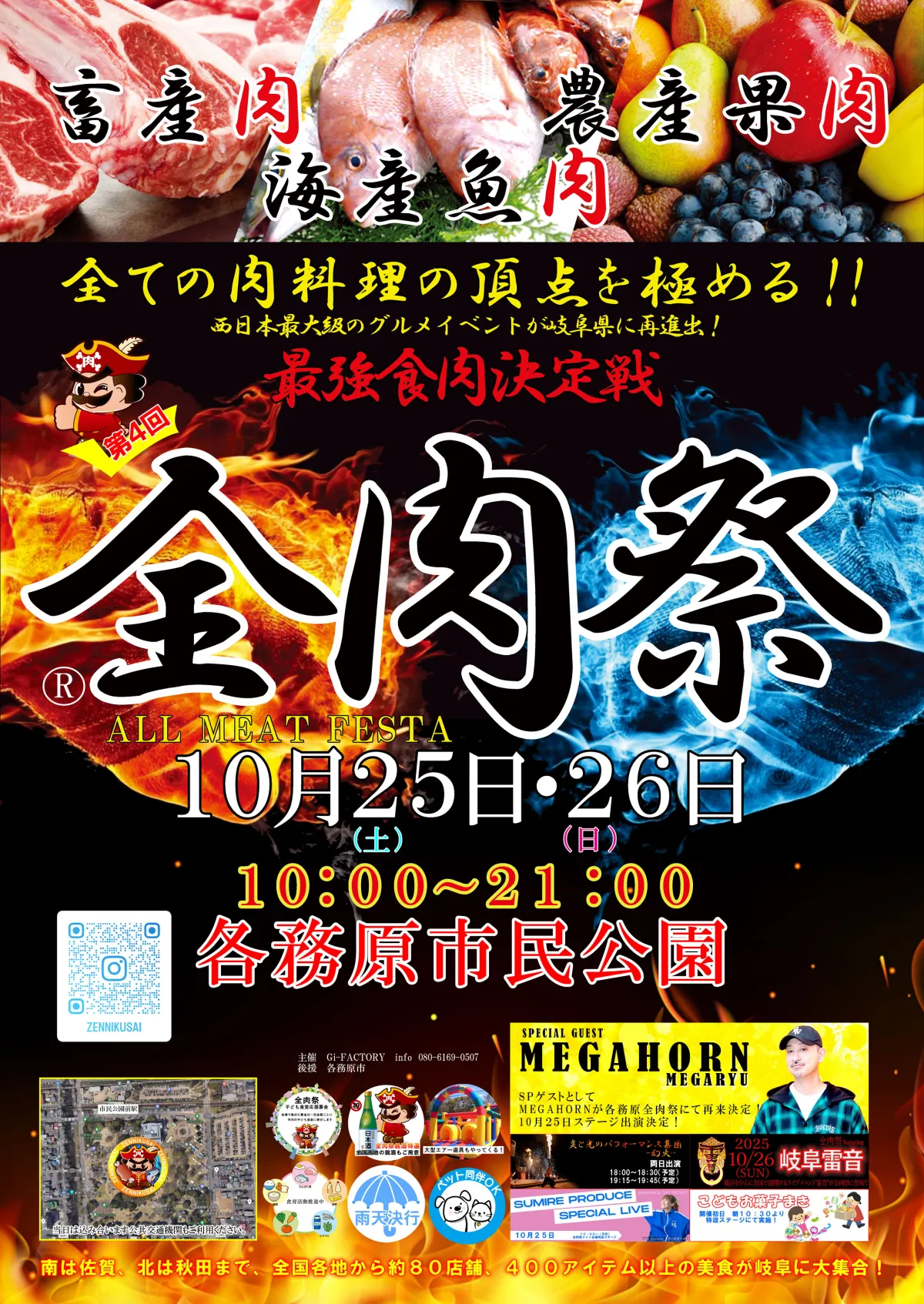 2025年10月25日から26日に、岐阜県各務原市の各務原市民公園で第4回「全肉祭」が開催されます。このイベントは西日本最大級のグルメイベントであり、全国各地から集まった美味しい肉料理を楽しむことができます。昨年も大人気だったこのイベントが、今年も期待されている理由を詳しく見ていきましょう。