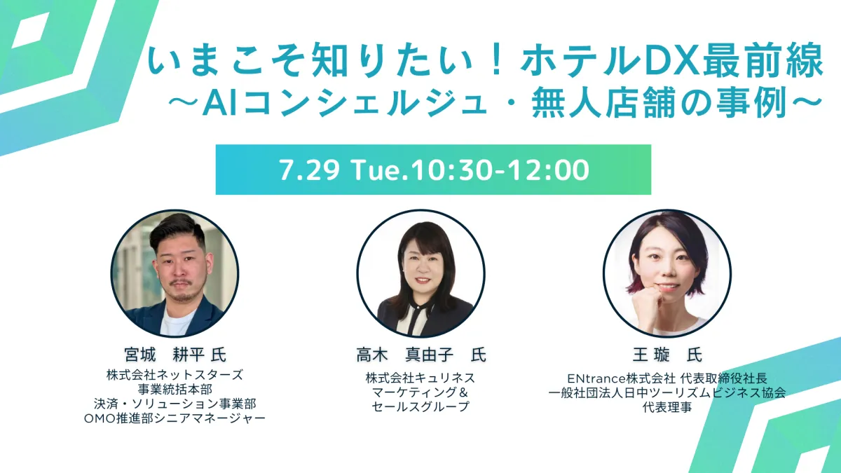 2025年7月29日(火)10時30分から、一般社団法人日中ツーリズムビジネス協会が主催するウェビナー「いまこそ知りたい!ホテルDX最前線 〜AIコンシェルジュ・無人店舗の事例〜」が開催されます。このウェビナーでは、株式会社ネットスターズのシニアマネージャー宮城耕平氏が登壇し、訪日外国人旅行者が過去最高を更新し続ける中で、いかにホテル業界がインバウンド対応の重要性を認識するかについてキーポイントを提供します。