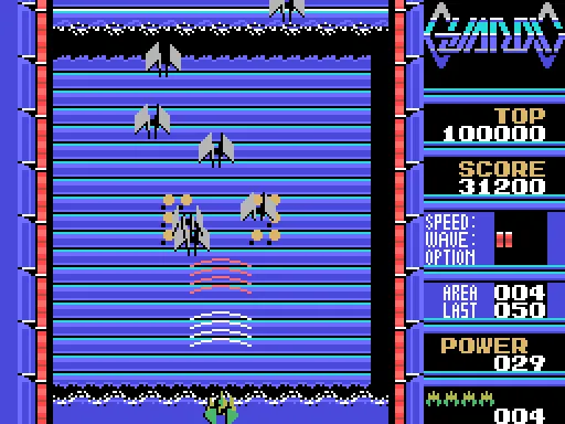 特にパワー配分のシステムは『ガーディック』の魅力の一部です。プレイヤーはスピードや攻撃力などにパワーを振り分けることができ、ここでの選択が勝敗を分けることになります。先を見越した節約が必要で、おそらくこのシステムが、他のシューティングゲームとは一線を画すポイントとなっています。