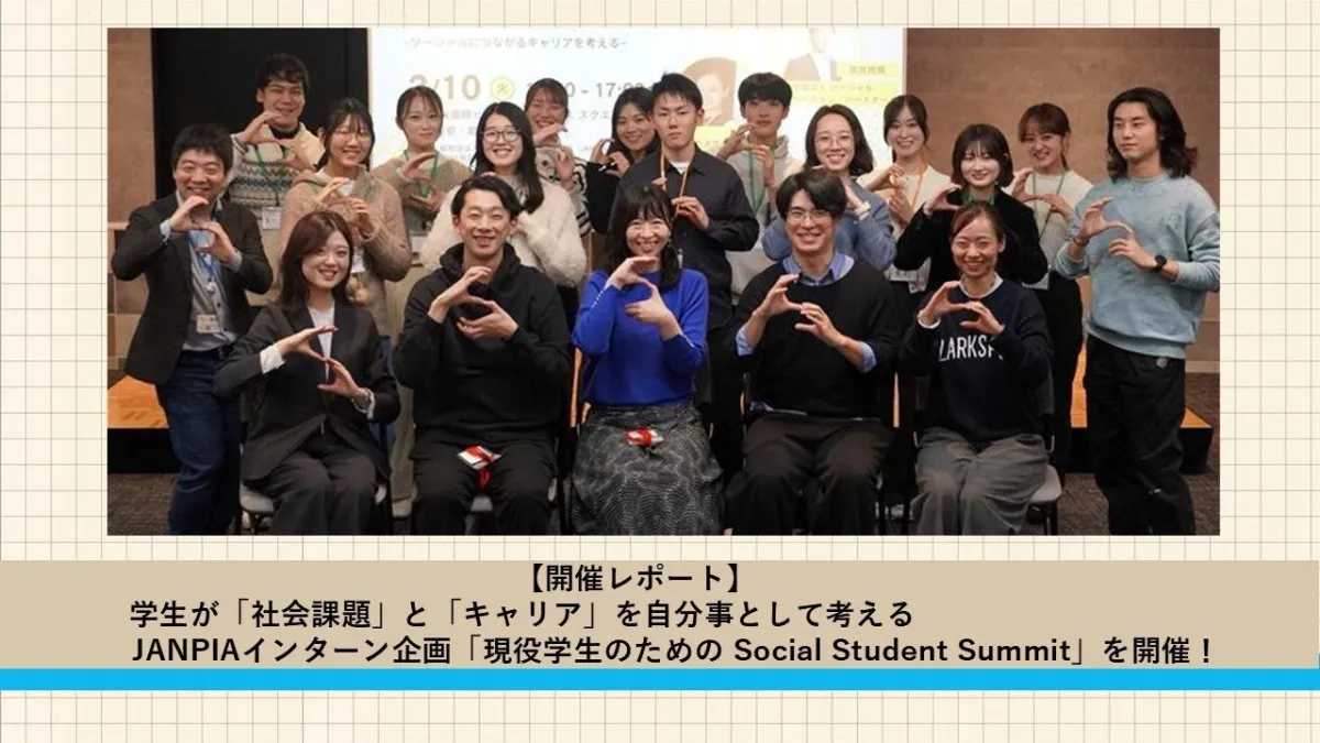2026年2月10日、東京都千代田区の日比谷国際ビルにて、一般財団法人日本民間公益活動連携機構(JANPIA)が主催するイベント「現役学生のための Social Student Summit」が開催されました。このイベントは、将来のキャリアを考える学生たちを対象に、ソーシャルセクターでの可能性を探ることを目的としています。