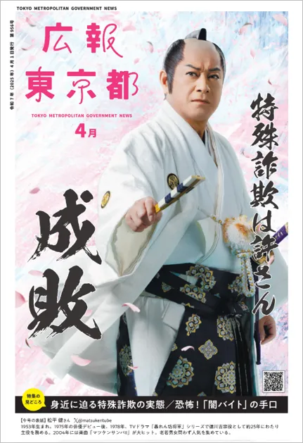 今回の特集には、俳優の松平健さんが登場し、「特殊詐欺は許さん、成敗」と呼びかけています。広く認知されている松平さんの力を借りて、多くの都民に対して注意喚起がなされることが期待されています。彼は、1978年から2003年にかけて放送されたテレビ朝日の時代劇「暴れん坊将軍」の徳川吉宗役で知られ、その後も多岐にわたって活躍しています。