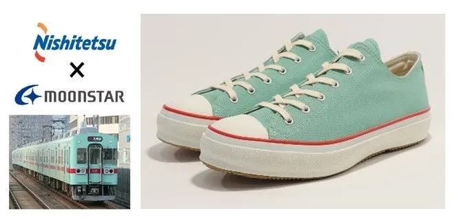 本企画の注目アイテムとして、西鉄の沿線地域に本社を構える株式会社ムーンスターとコラボレーションした「アイスグリーン色」のオリジナルスニーカーが先着500足限定で販売されます。このスニーカーは、アイスグリーンのアッパーにボンレッドのラインが施され、インソールには西鉄とムーンスターのロゴが印刷される、特別なデザインの一品です。