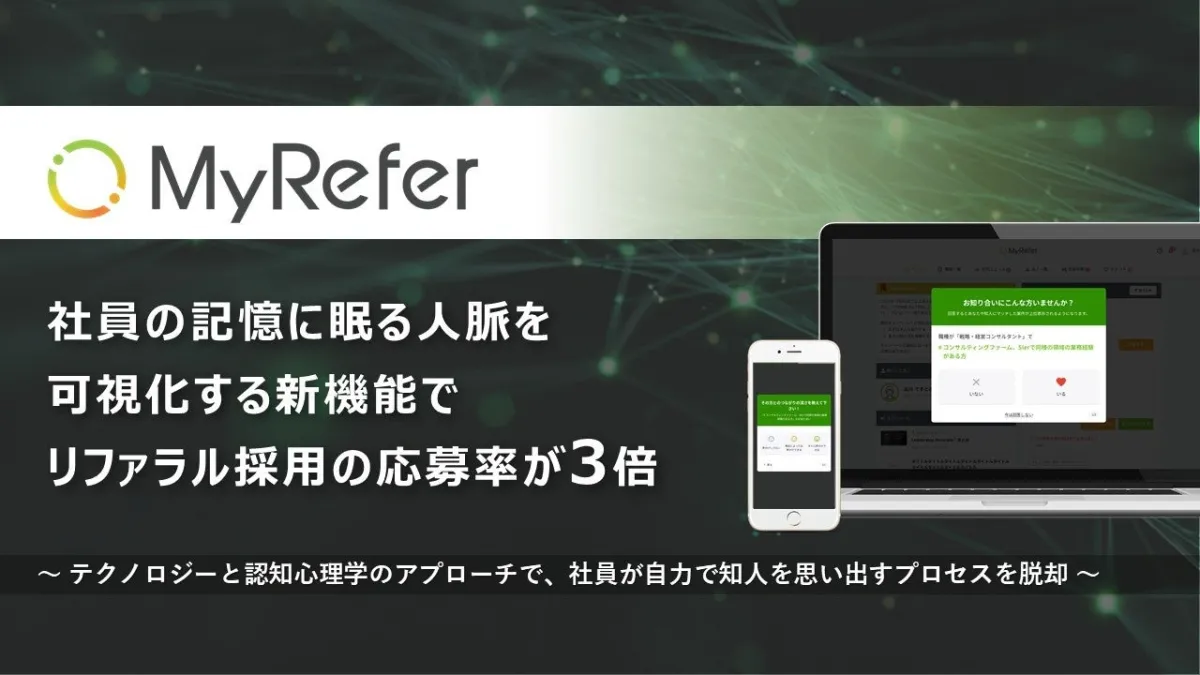 株式会社TalentX(本社:東京都新宿区、代表取締役社長 CEO:鈴木貴史)は、リファラル採用サービス『MyRefer』に新たに搭載した機能『リクルーターレコメンド機能』を発表しました。この新機能により、リファラル採用の応募率が従来比で3倍に伸長したと報告されています。