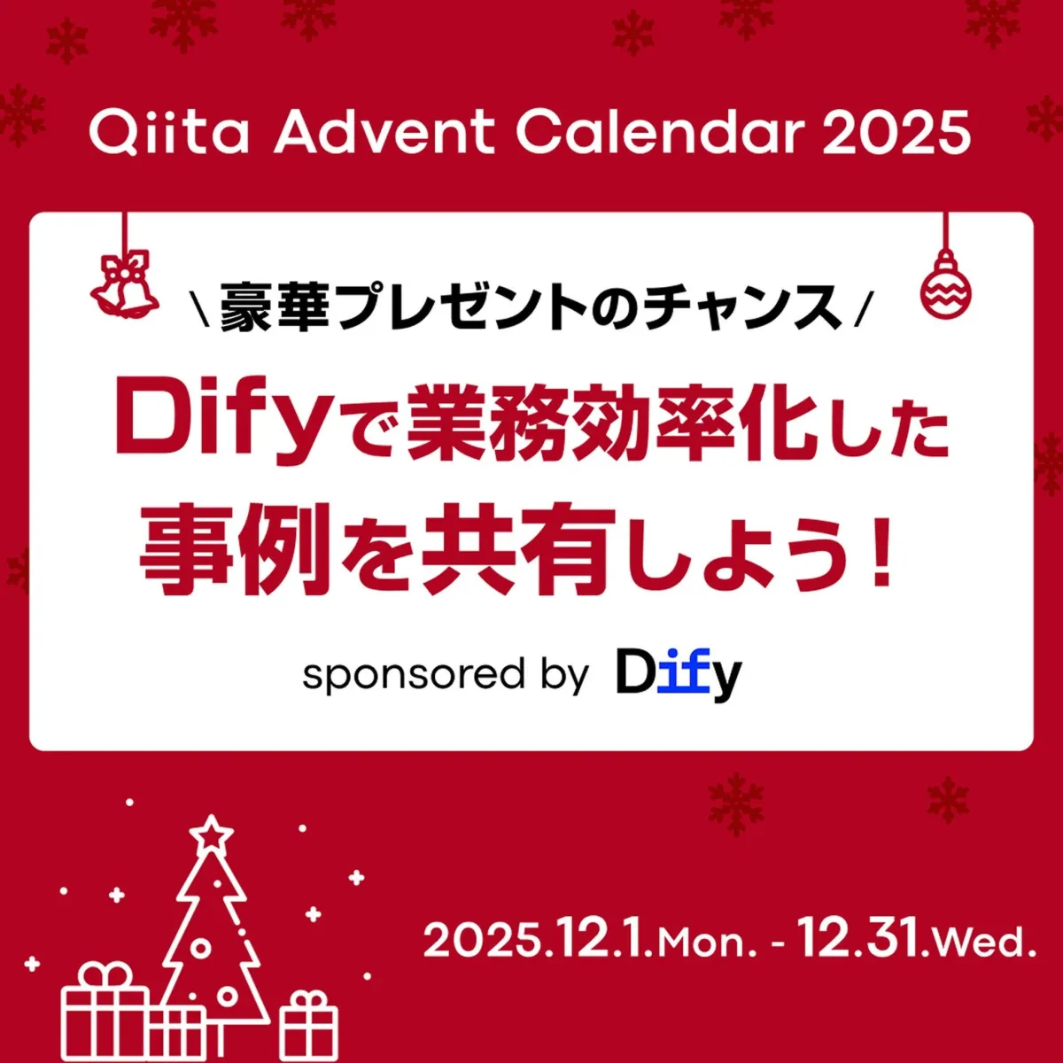 「Qiita Advent Calendar 2025」は、Difyを通じて業務効率化の可能性を探る貴重な機会です。技術者同士の交流を深め、共に成長する場として、多くの参加をお待ちしています。詳細は