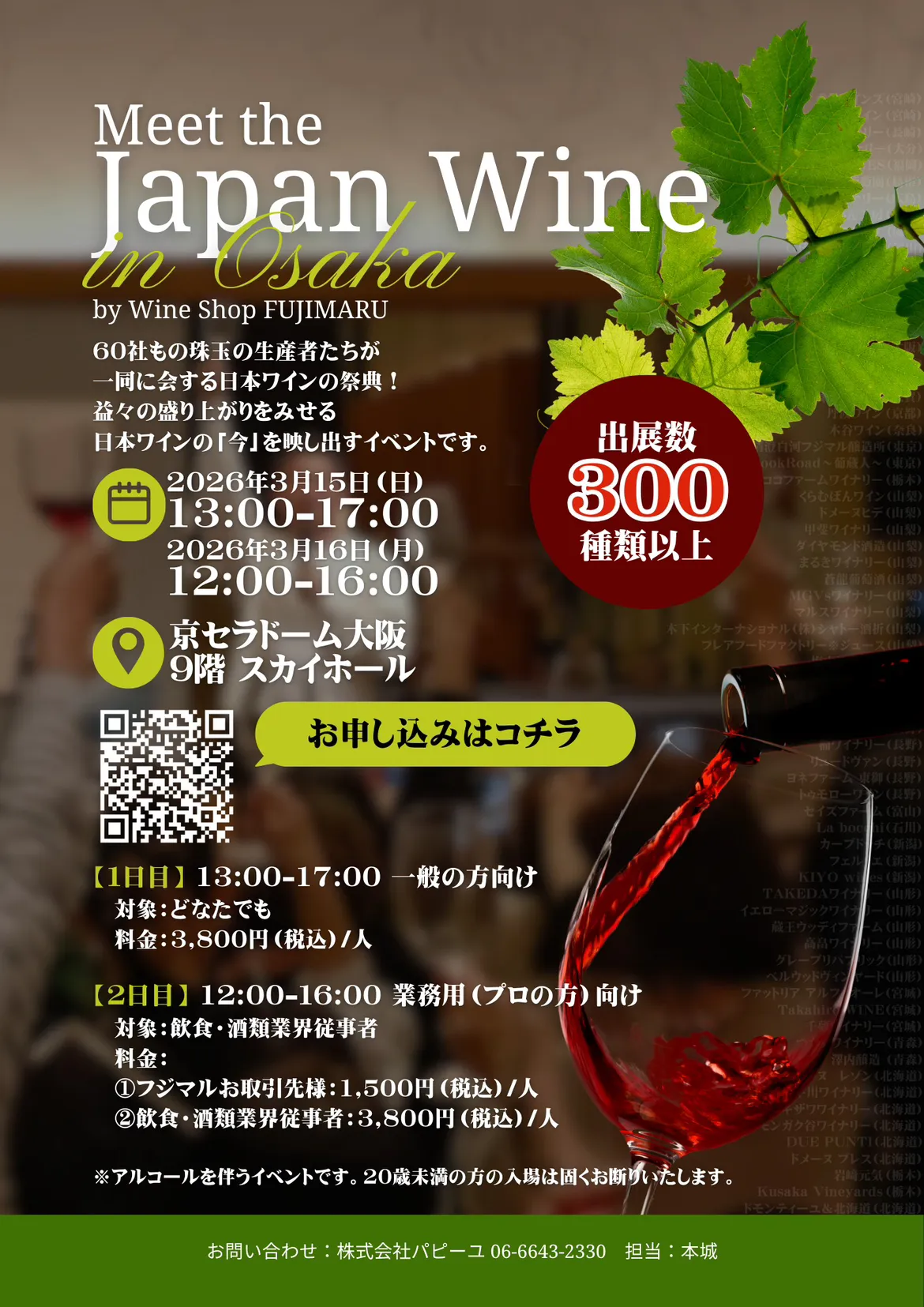 日本のワインが持つ魅力を存分に味わえる「Meet the Japan Wine in OSAKA 2026」。皆様のご参加を心よりお待ちしております。ワインが好きな方、また興味をお持ちの方は、ぜひこのイベントで新しいワインの世界を発見してください。
