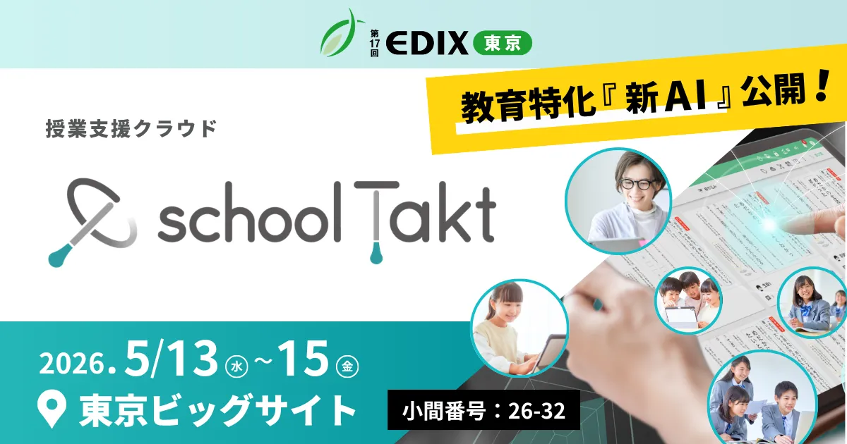 株式会社コードタクトが2026年5月13日(水)から15日(金)まで開催される「EDIX東京」に出展します。このイベントでは、「スクールタクト」などのAI技術を用いた教育改革の先進的事例が紹介され、参加者は新しい授業支援のスタイルに触れることができます。