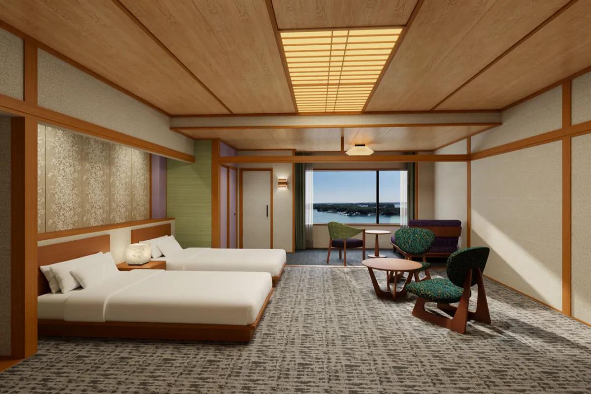三重県志摩市に位置する賢島宝生苑は、2025年7月18日から華陽棟の6階と7階の客室を改装し、新たな魅力を持つ和風旅館として生まれ変わります。改装後の客室は、明るく開放的でありながら、和の趣きを存分に感じられるデザインに仕上がる予定です。