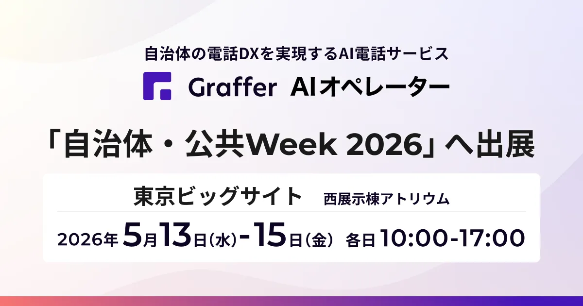 2026年5月13日から15日まで、東京ビッグサイトで開催される「自治体・公共Week 2026」に、株式会社グラファーが出展します。同社は、自治体の業務変革を支援する企業であり、特に電話対応に特化したAIサービス「Graffer AIオペレーター」を紹介します。このサービスは、自治体の電話対応における課題を解決し、住民サービスの質を向上させることを目的としています。