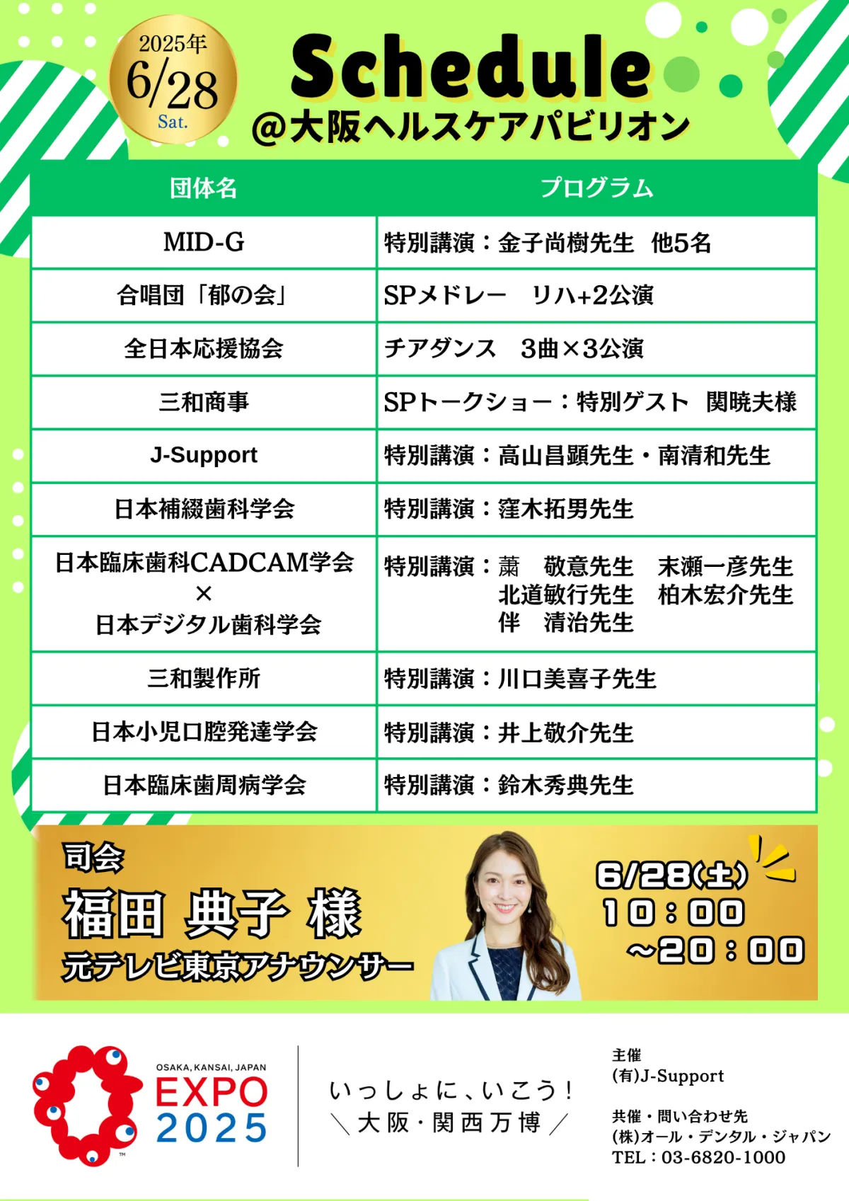 2025年6月28日(土)、大阪・関西万博の大阪ヘルスケアパビリオンにて、有限会社J-Supportと株式会社オール・デンタル・ジャパン(ADJ)が協力し、「健口」をテーマにした特別なイベントが開催されます。この催事は、参加者の健康意識を向上させることを目的としており、全世代が楽しめる内容になっています。