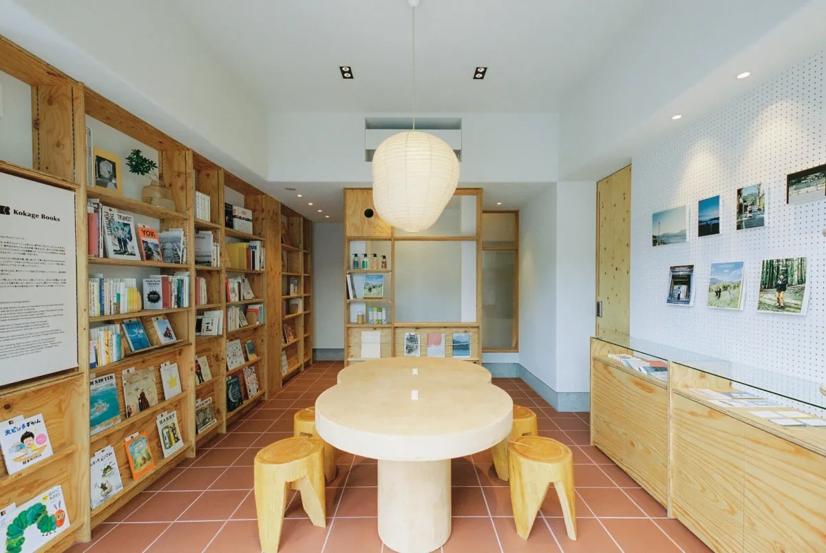 新棟の1階には「Kokage Books」がオープンし、ライブラリと小さなセレクトショップが組み合わさったユニークなスペースがあります。「せとだの木陰で読書」をテーマに、アートや建築、旅行、子供向けの絵本まで多彩な本が揃い、地域の人々や旅行者がくつろぎながら本を楽しむ場所になっています。ここでは、お気に入りの本と出会える瞬間が待っています。