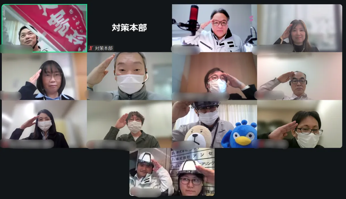 訓練が始まった瞬間、震度6強の地震が発生し、選定された事業所が被災した状況をシミュレーションしました。管理本部はすぐに災害対策本部に移行し、各事業所からの被害報告を集め、迅速に状況把握と初動対応を行いました。 具体的には、以下の項目について確認が行われました: