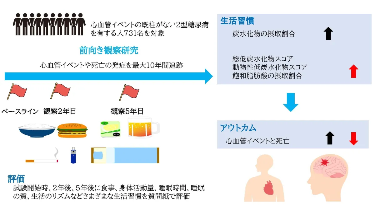 2型糖尿病は、一般に心血管イベントや死亡リスクが高いことが知られており、生活習慣の改善が求められています。しかし、これまでは脂肪摂取についての研究が多く、炭水化物の摂取が心血管イベントに与える影響はあまり探求されていませんでした。今回の研究は、炭水化物依存の食事がリスクをどのように増加させるかに注目しています。