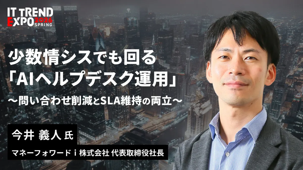 2026年3月、東京で開催される「ITトレンドEXPO2026 Spring」において、マネーフォワードi株式会社の代表取締役社長、今井義人氏が登壇します。本セッションでは、特に企業の情報システム部門が直面する人材不足の現状と、AIを活用した問い合わせ対応の自動化の重要性に焦点を当てます。