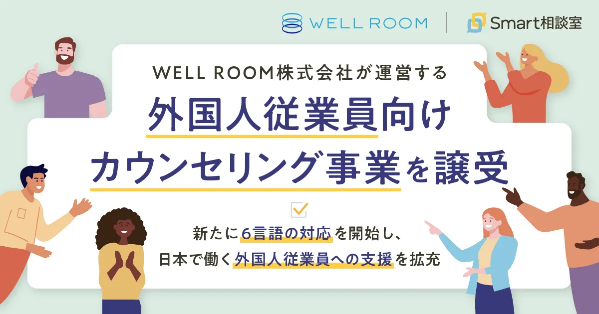 最近、株式会社Smart相談室が成長を続ける日本の外国人労働者支援の一環として、WELL ROOM株式会社から外国人従業員向けカウンセリング事業を譲り受けました。
