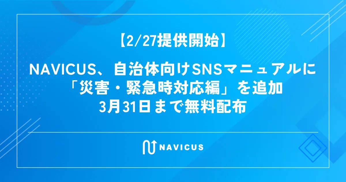 東京都千代田区に本社を置く株式会社NAVICUSは、2026年2月27日から「災害・緊急時対応編」を新たに追加した自治体向けSNSマニュアルの提供を開始しました。このマニュアルは通常価格が10,000円(税抜)ですが、2026年3月31日までの期間限定で無料で提供されます。