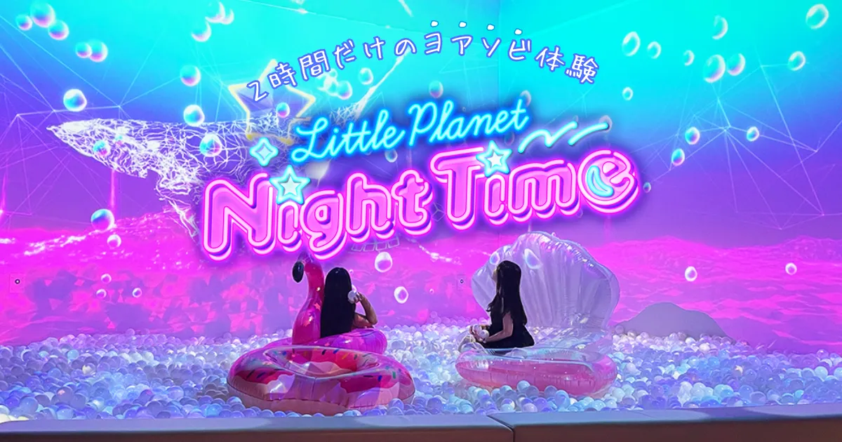 このナイトタイムプランでは、2時間だけの“ヨアソビ体験”が待っています。通常の「リトルプラネット」では味わえない、幻想的な空間でデジタルボールプールなど独自のアトラクションを楽しむことができます。まるでナイトプールのような雰囲気の中で、特別にデザインされたアトラクションを心ゆくまで満喫してみてはいかがでしょうか。