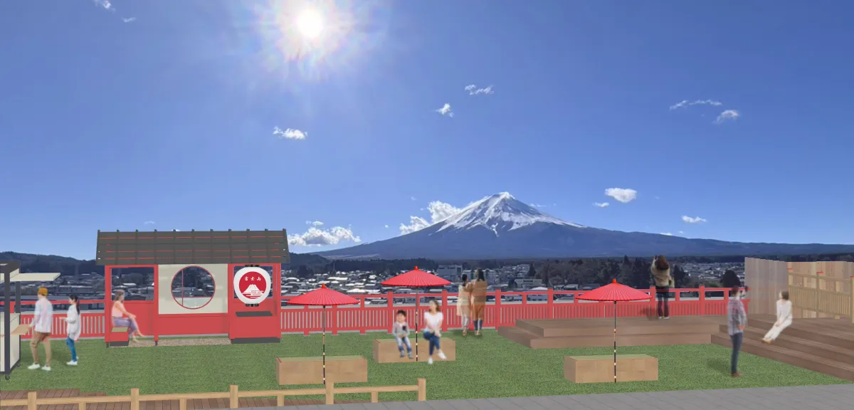 リニューアル後の展望デッキには、人工芝を敷いた快適なスペースが誕生。これにより、訪れた人々はゆったりと心地よい時間を過ごすことができます。また、富士山を背景にした「和×富士山」というテーマの写真が撮影できるフォトスポットも設けられ、SNS映えする写真を容易に撮影できる環境が整います。決して遮るもののない壮大な富士山の景色を、一望できるデッキでは、訪れる人たちが富士山の大自然の中で癒される瞬間が広がります。