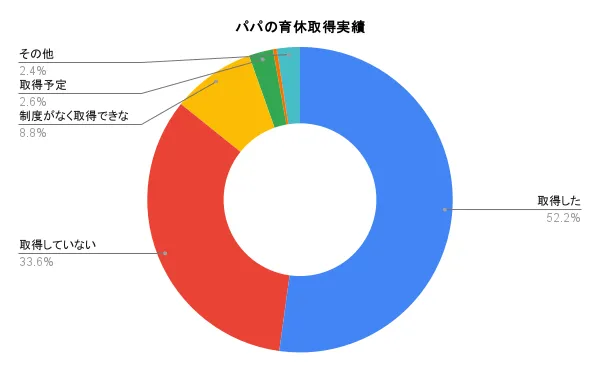 本調査は、2023年以降に出産した女性738名を対象に行われ、インターネットを通じてデータを収集しました。調査結果によると、52%がパパの育休取得を経験していることが確認されましたが、34%は取得していないという回答がありました。