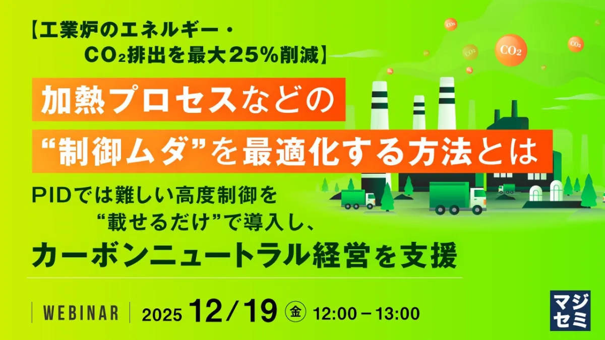 本ウェビナーでは、専門知識がなくても使える「Smart MPC(モデル予測制御)」を紹介します。これは、機械学習と過去の運転データを駆使して、リアルタイムに最適な制御を行う新しい方法です。さらに、現場にスムーズに実装できる「E-Smart MPC」(埋め込み型AI制御コントローラ)もご紹介します。この技術により、工業炉のエネルギー使用量の削減だけでなく・CO₂排出量の削減も期待できます。